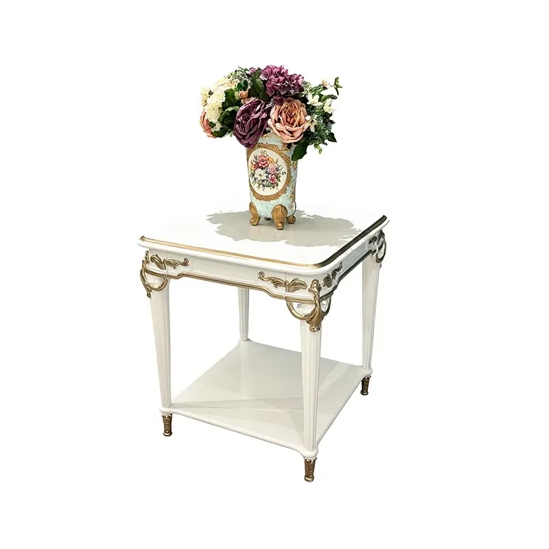 Petite table basse française en bois massif, palace européen, table d'angle de luxe sculptée en bois massif