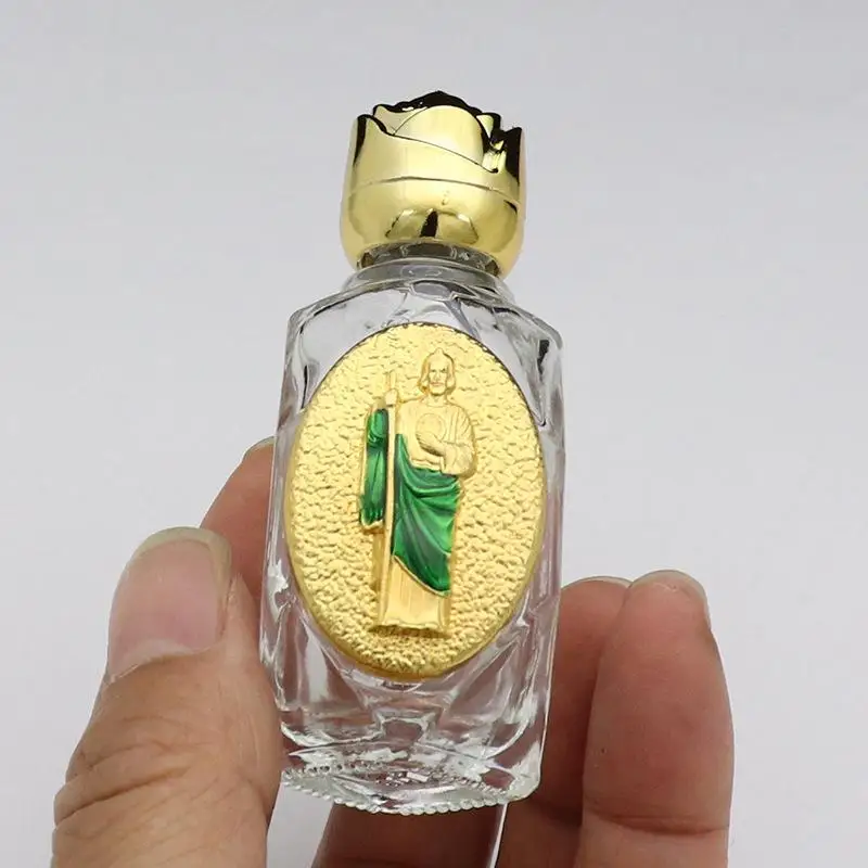 Bouteille d'eau bénite catholique de 15ml, bouteille de Sculpture vierge chrétienne dorée, bouteille d'eau bénite
