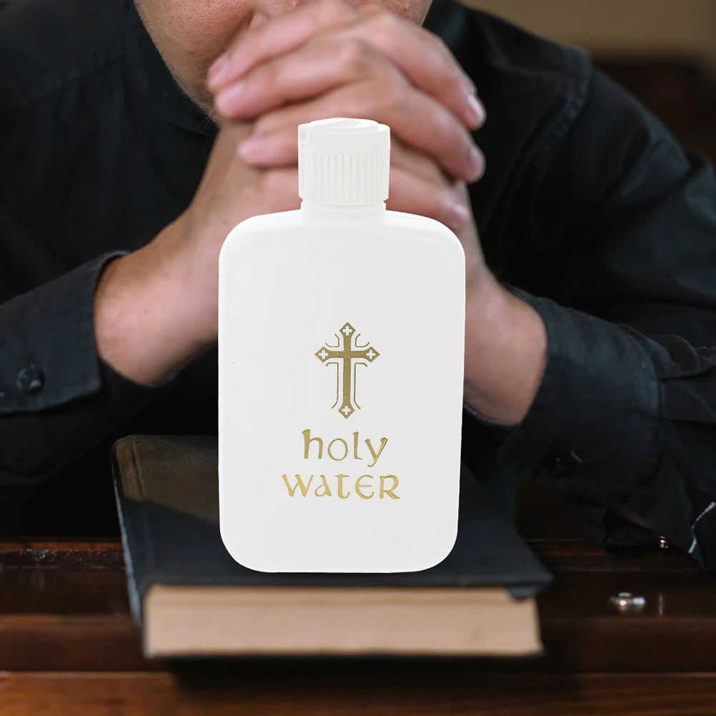 6 pièces bouteilles d'eau bénite en plastique corps blanc or jésus croix motif étanche église baptême exorcisme voyage bouteille d'eau bénite
