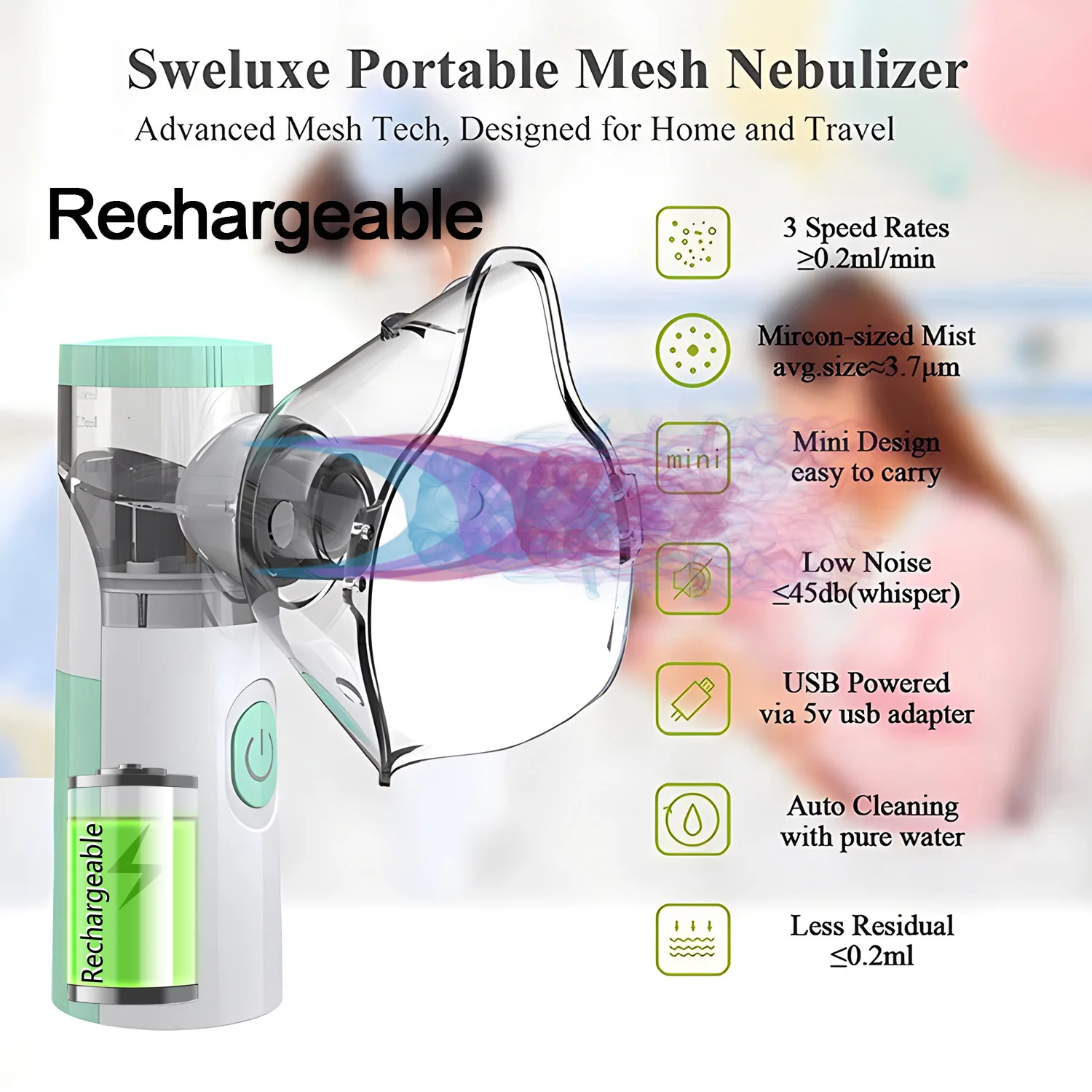 Nébuliseur pour enfant, inhalateur pour adulte, atomiseur portable, mini nébuliseur silencieux à mailles, humidificateur rechargeable, nébulisateur