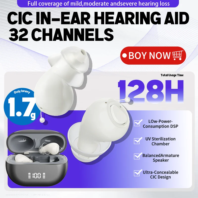 Aide auditive à 32 canaux, stérilisation UV, réduction intelligente du bruit, pour la surdité/personnes âgées, aide auditive invisible de haute qualité