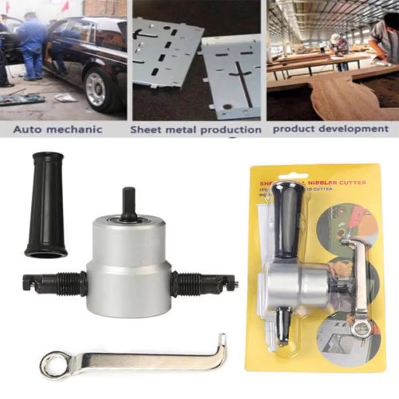 Coupe-feuille de métal à Double tête, grignoteuse de fer, outils électriques de coupe, accessoires de fixation de perceuse électrique, ciseaux de poinçonnage de plaque de voiture