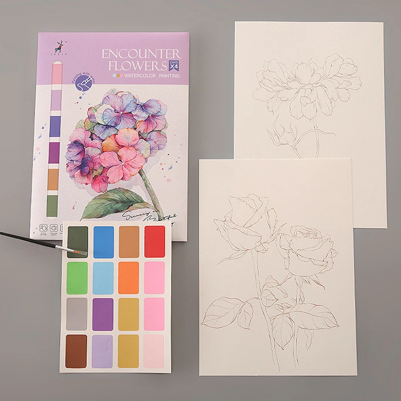 Livre de coloriage avec pinceau, 4 feuilles, livre de Gouache, livre de peinture à l'aquarelle Portable, Graffiti pour enfants, papeterie de dessin d'images