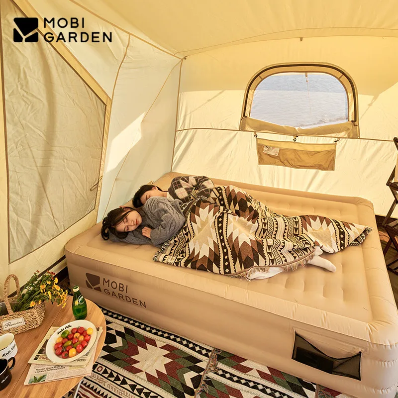 MOBI GARDEN matelas gonflable simple/Double Camping TPU + peau de pêche 35-38CM hauteur lit touristique tapis auto-gonflant avec canapé à pompe