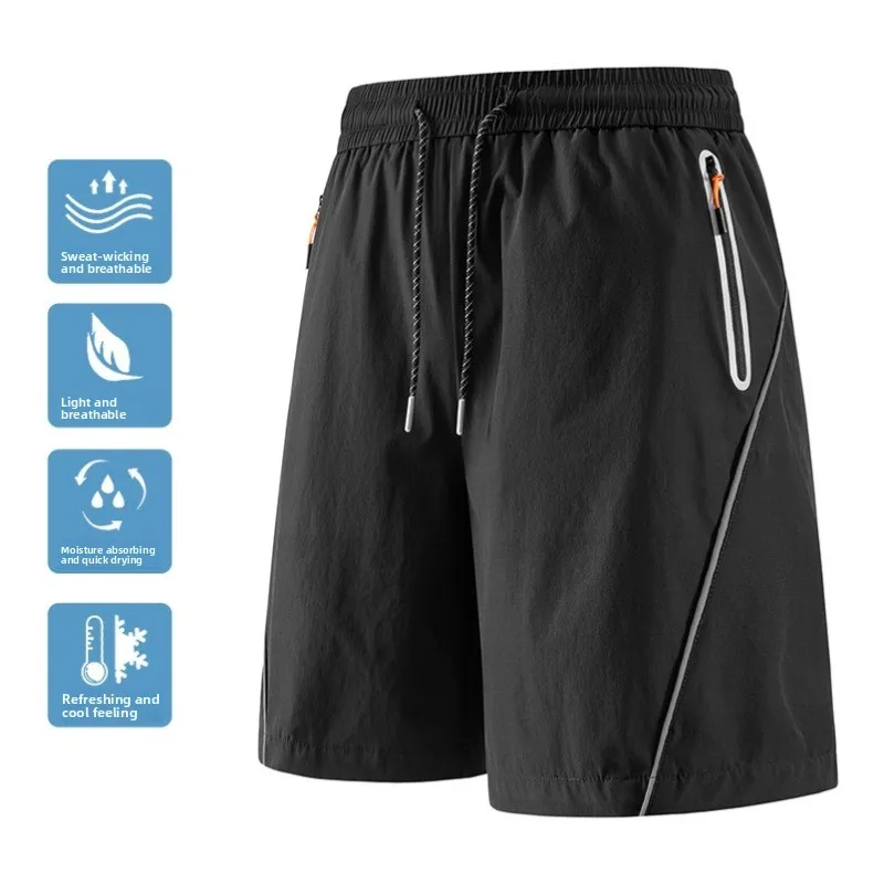 Shorts décontractés d'été pour la pêche en plein air, tendance mode, amples, séchage rapide, en soie glacée, anti-humidité, pour hommes, pantalon 5 points