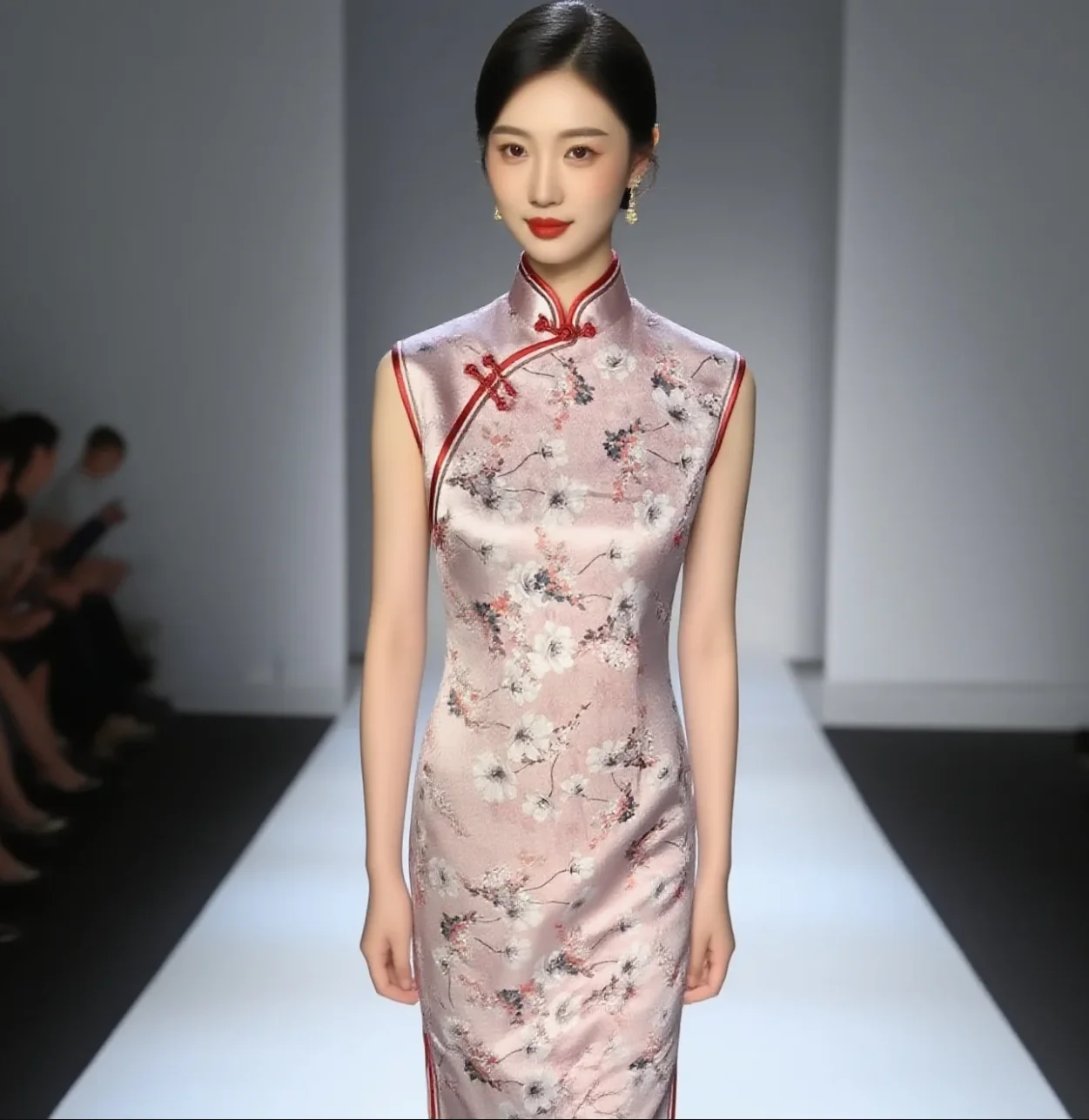 Tissu Ramie chinois vintage, superbe matériau d'impression numérique florale rouge pour Cheongsam, fabrication et couture de robes Qipao2026