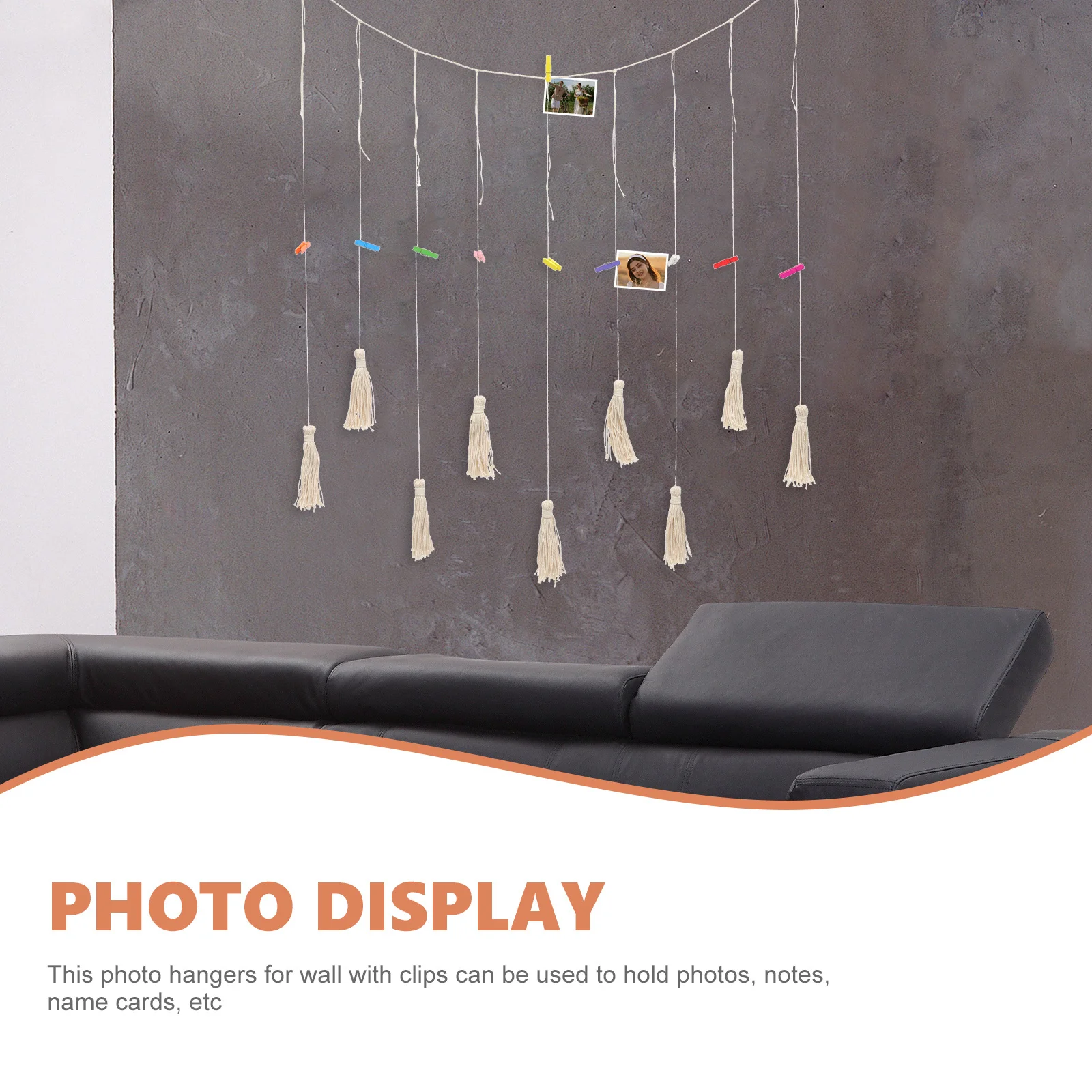 1 ensemble de bannière murale à suspendre pour photos, cadre photo DIY, clip en bois, longue corde, décoration de fête d'anniversaire, décoration murale à suspendre