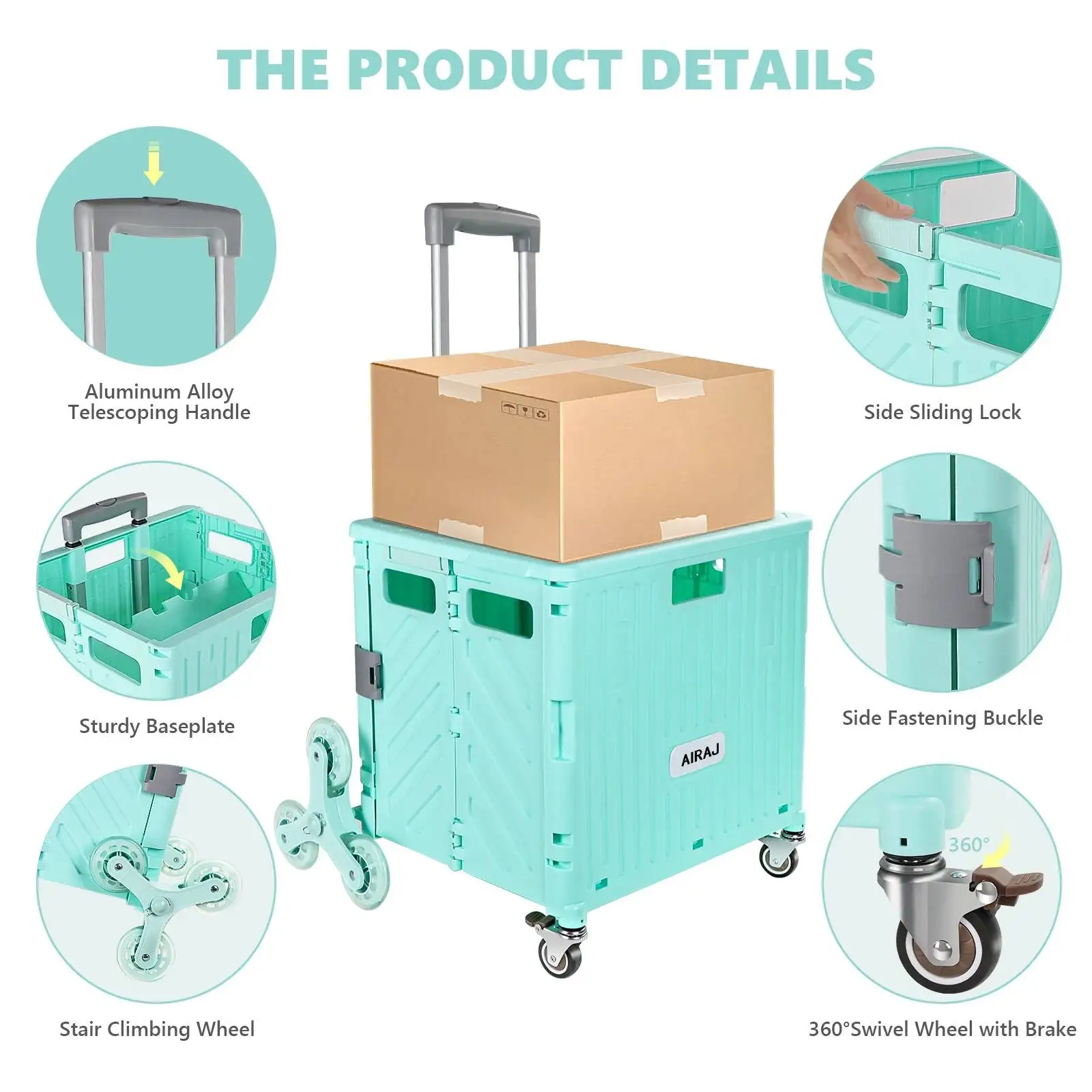 Chariot de courses pliable rapide 5S, grande capacité, tiré à la main, escalade des escaliers, bonde de légumes, chariot de pique-nique léger de voyage