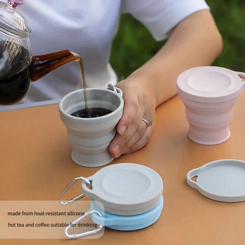 Tasse pliante télescopique pour Camping en plein air, tasse à eau en Silicone de qualité alimentaire avec couvercle, tasse à bain de bouche Portable, tasse pratique de voyage, 1 pièce