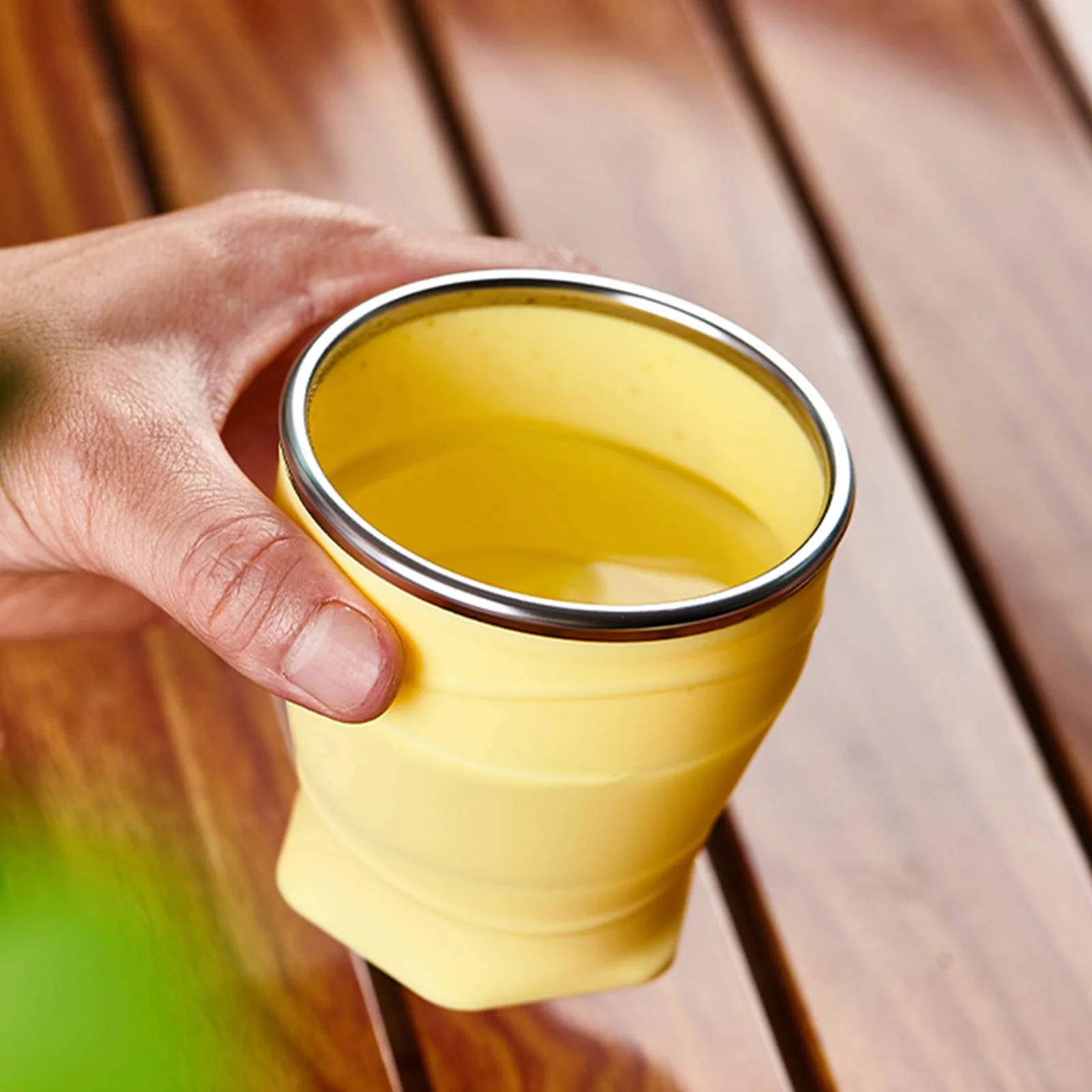 Tasse de bain de bouche télescopique Portable résistante aux hautes températures, tasse pliante en acier inoxydable, tasse de qualité alimentaire pour voyage en plein air