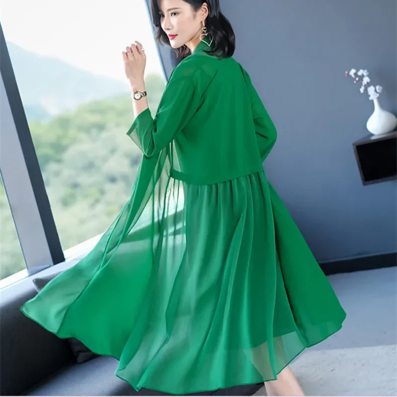 Cardigan à manches longues pour femmes, manteau d'extérieur polyvalent, longueur moyenne à longue, grande taille, printemps et été