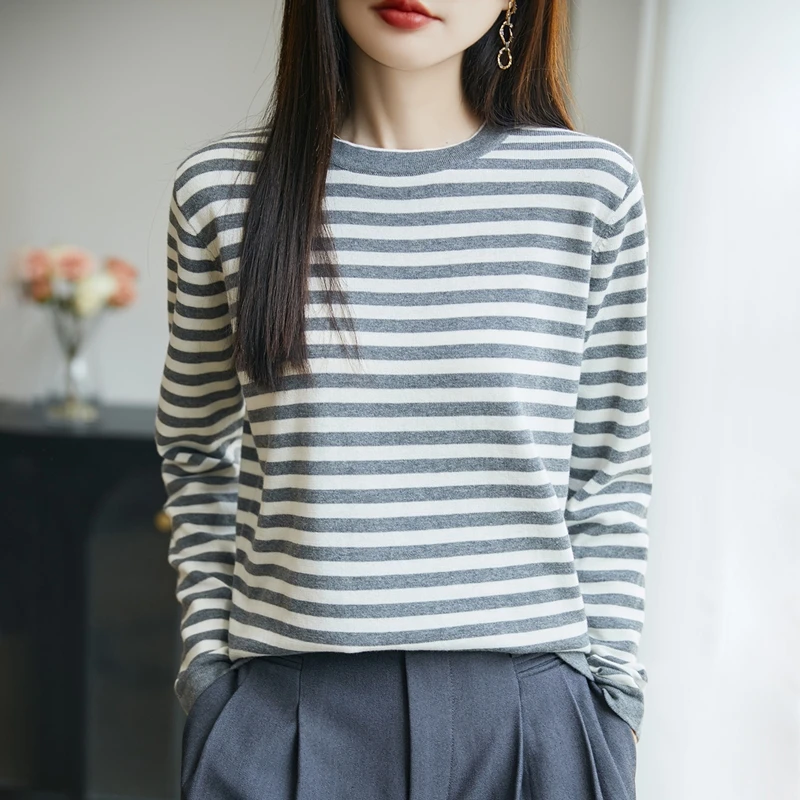 100% coton femmes pull col rond bande pull décontracté tricot vêtements mode doux fond pull hauts A3202013