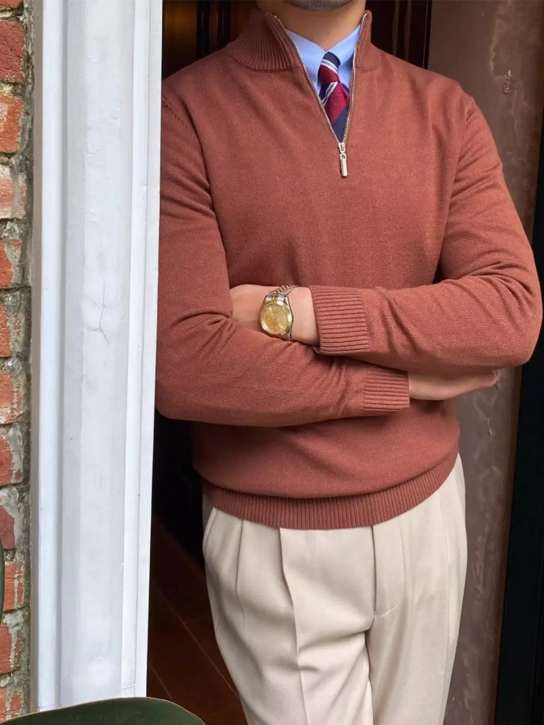 Pull à col zippé pour homme, couleur unie, tricoté, manches longues, décontracté, polyvalent, automne-hiver