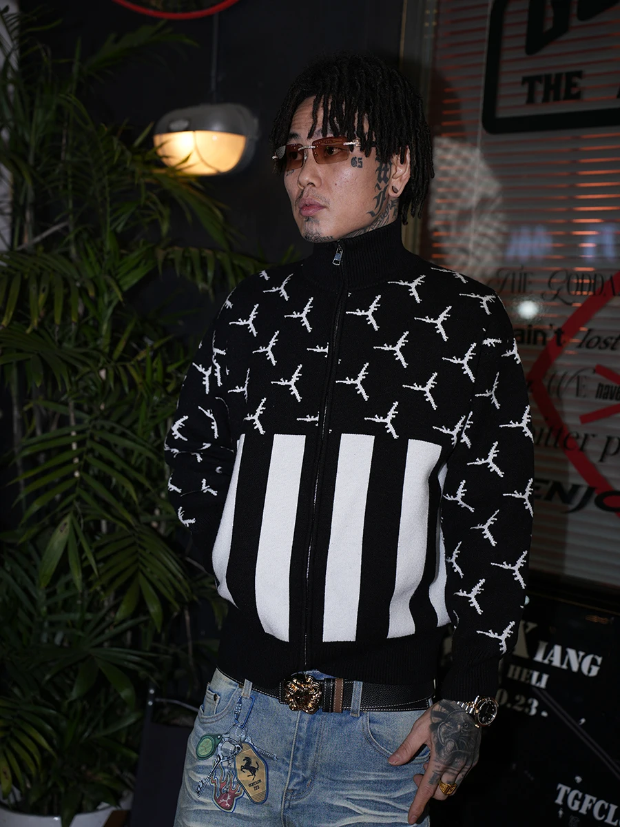 TGFCLUB Veste pull zippée à col montant avec logo rayé style Hip Hop américain, décontractée pour jeunes, à manches longues, pour le printemps et l'automne
