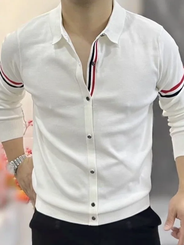 Cardigan ouvert à col rabattu pour homme, tricot décontracté à manches longues, motif rayé imprimé, tendance et polyvalent, collection automne-hiver