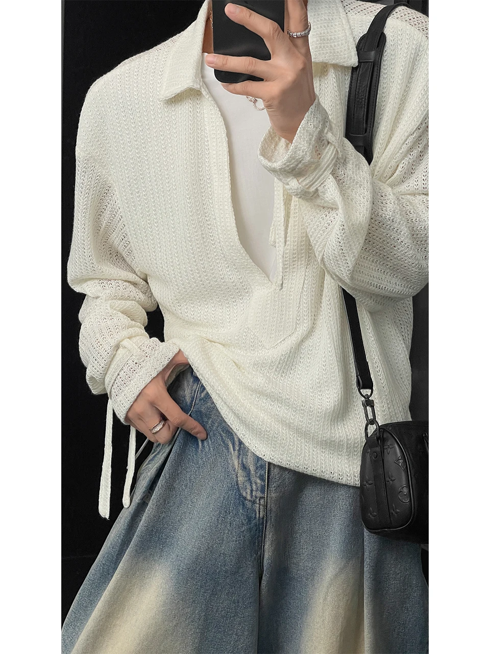 T-shirt pour homme en maille longue à motif ajouré, design Dragon, décontracté, ample, tendance, pour les jeunes, saison d'automne, couleur