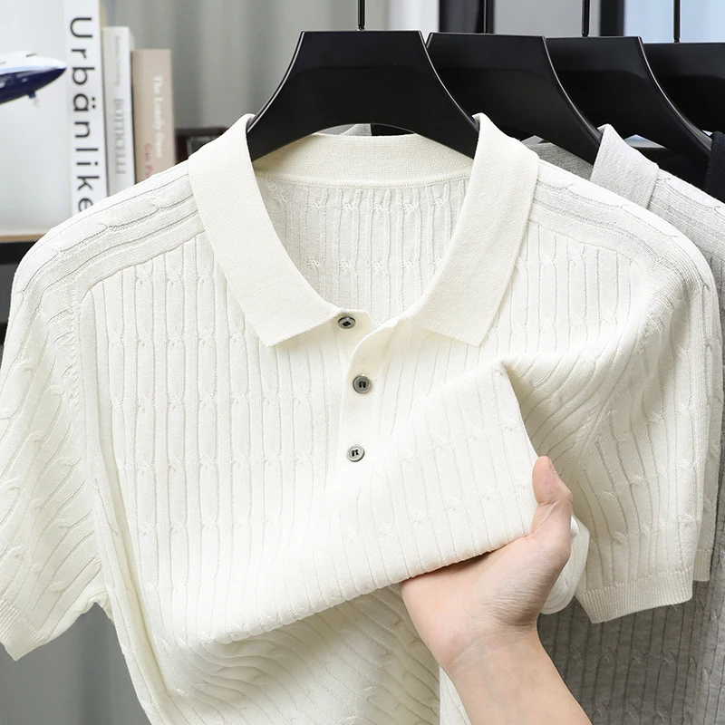 Pull tricoté à revers pour homme, haute qualité, anti-boulochage, sensation fraîche, manches courtes, été, doux et confortable, vêtements pour homme, vente chaude