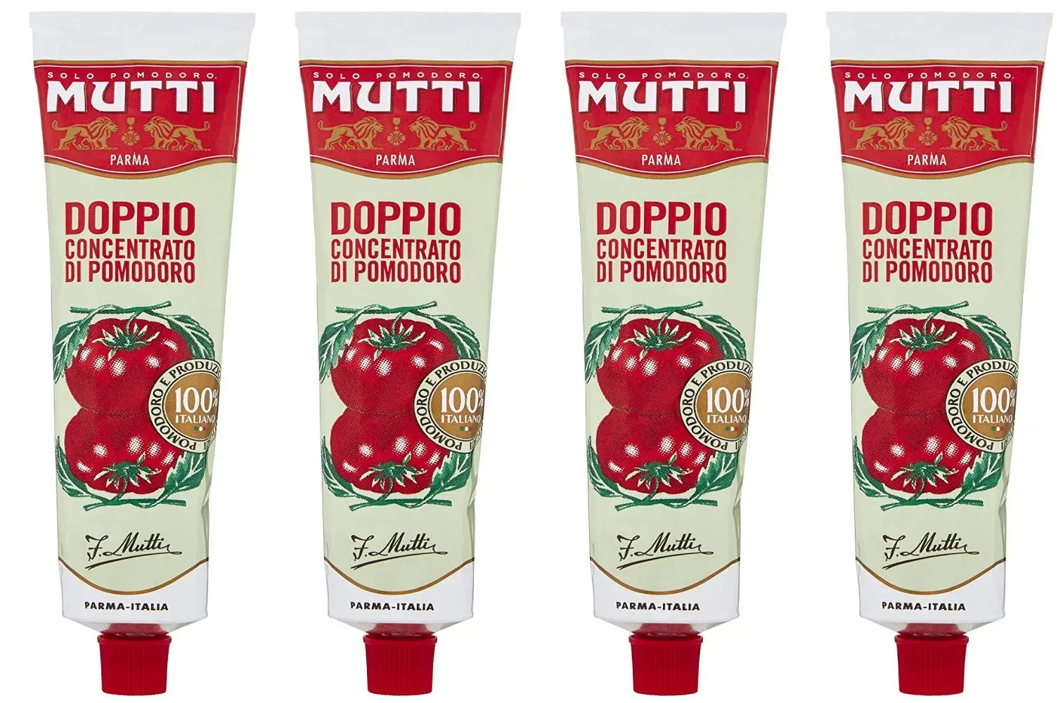 Pâte de tomate concentrée double Mutti, 130g, paquet de 4