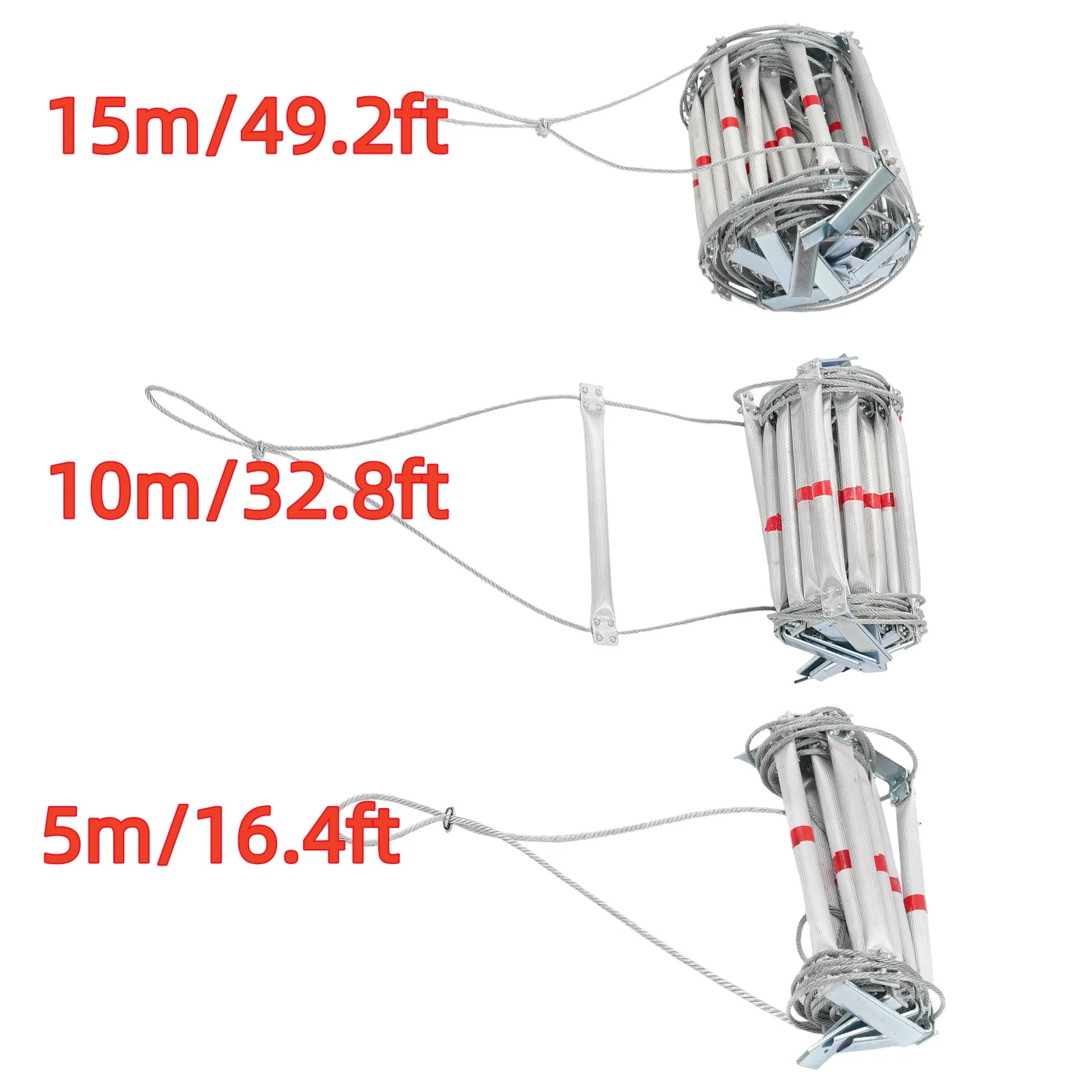 Échelle de corde de 5m/10m/15m, échelle d'évasion en fil étendu, échelle de sauvetage en acier, alliage d'aluminium, entraînement en plein air d'escalade sûr 200kg