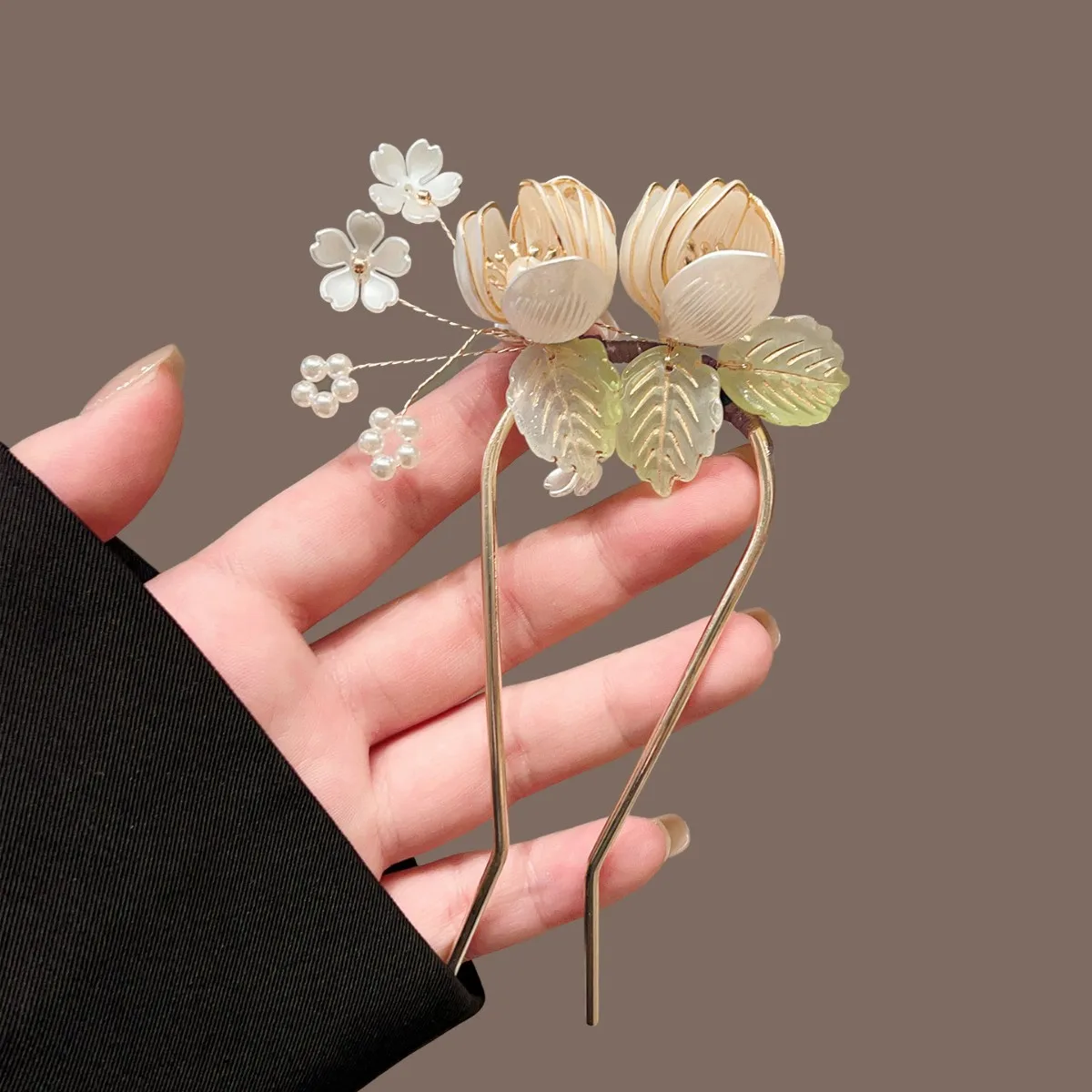 Épingle à cheveux en forme de U Magnolia, fleur enveloppée, nouveau style chinois, chignon Qipao, accessoire de cheveux de mariée