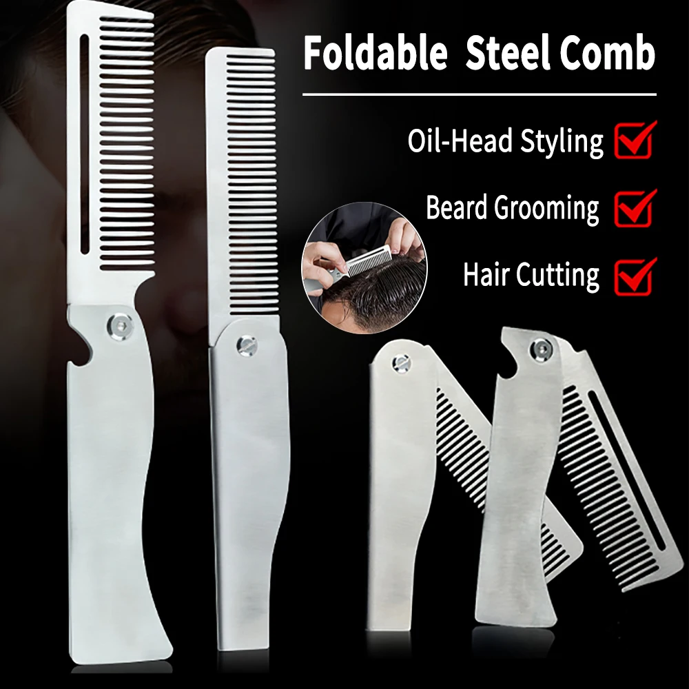 Nouveau Type 1/2 pièces peignes en acier portables pliant peigne à barbe de poche pour hommes tête d'huile peigne de coiffure Salon de coiffure outils pour coupe de cheveux