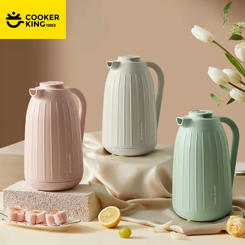 COOKER KING – bouilloire isolée Simple de 1500ml, doublure intérieure en verre + PP, grande capacité, théière de vésicule biliaire rouge, flacon d'eau chaude pour la maison