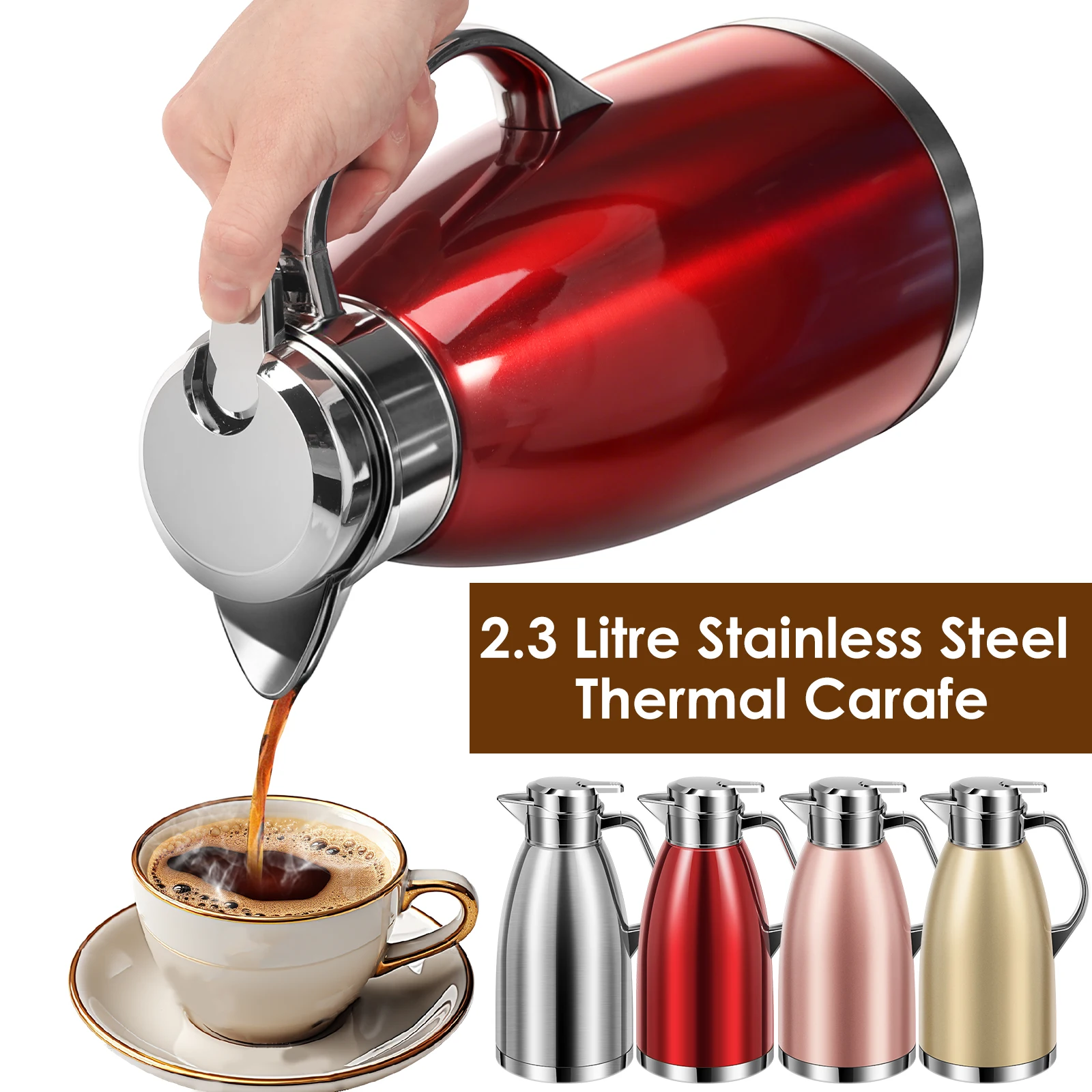 Carafe thermique en acier inoxydable de 2,3 L, bouteille isolée sous vide à double paroi, pot à café isolé pour la maison, pour le lait, le jus, les boissons