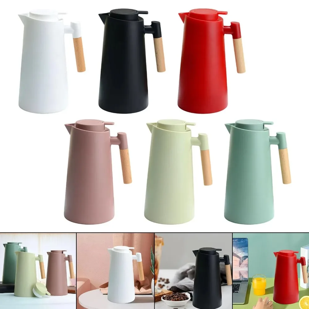 Flacon sous vide nordique 1L, manche en bois, doublure en verre, pichet d'eau chaude, grande capacité, Double paroi, cafetière domestique, verres
