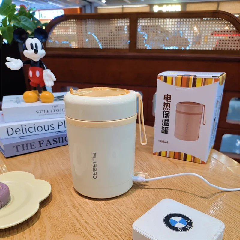 Tasse à petit-déjeuner USB en acier inoxydable 304, tasse à soupe portable, tasse pour étudiants en dortoir, conservation de la chaleur longue durée