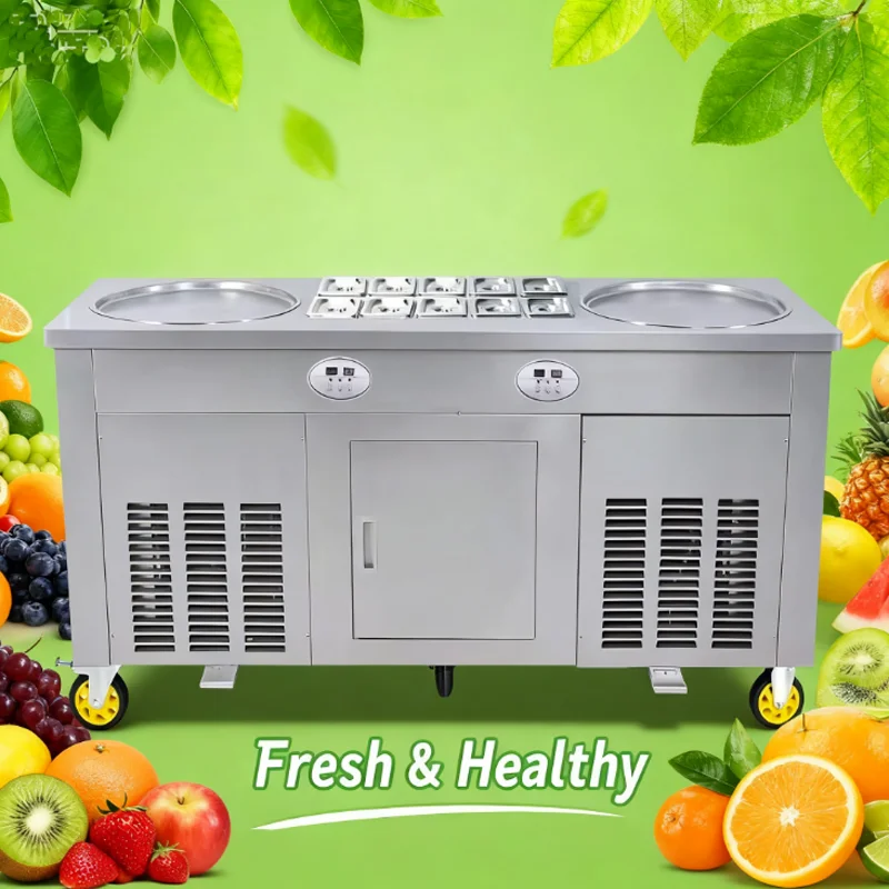 Machine de formage de rouleaux de crème glacée haute puissance, Machine de yaourt frit à Double Pot circulaire thaïlandais