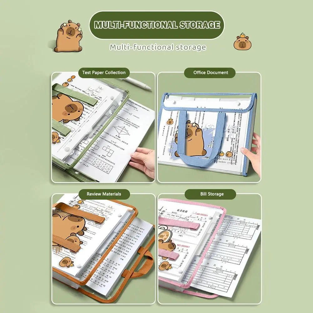 Sac de rangement extensible pour documents A4, 13 poches, imperméable, grande capacité, motif capybara, transparent, mignon, pour étudiants