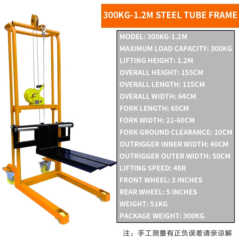 Chariot élévateur à manivelle, unité de levage portable de 300 kg/200 kg, cadre en tube d'acier épaissi, pour la manipulation des marchandises. (Personnalisé)