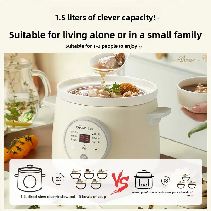 Marmite à ragoût électrique 1,8 l, 9.5h, bouilloire de santé en céramique fendue, multifonction, médecine chinoise, Pot à soupe, maintien automatique au chaud