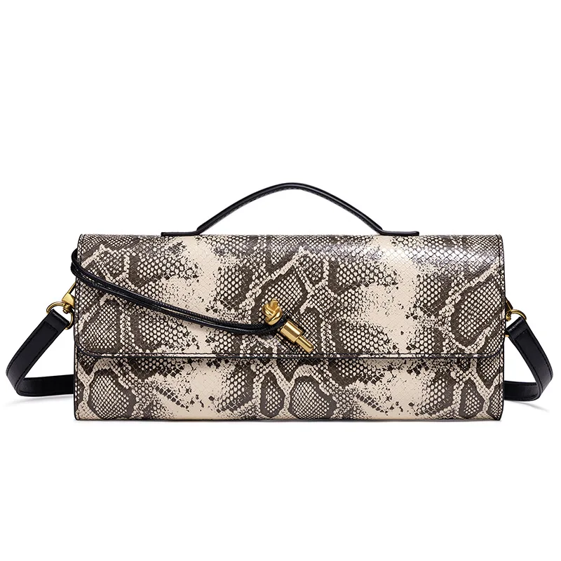 Sac français horizontal à motif serpent pour femmes, pochette polyvalente pour les soirées, à main, à bandoulière, en accordéon