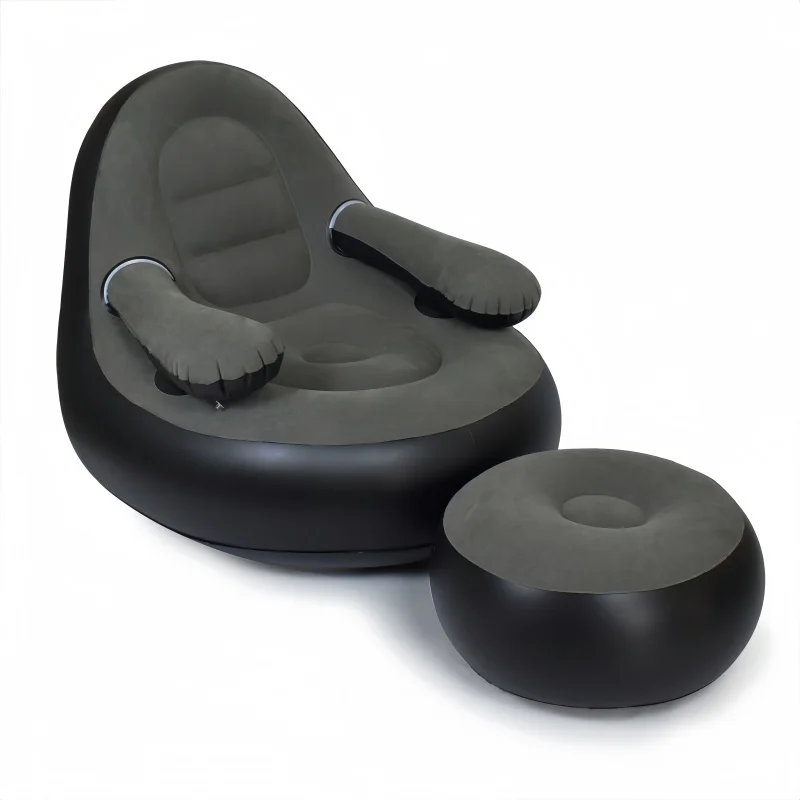 Canapé gonflable en PVC avec accoudoirs et repose-pieds, chaise gonflable pliable pour adultes, adapté au camping ou à la maison, ensemble de loisirs gonflable