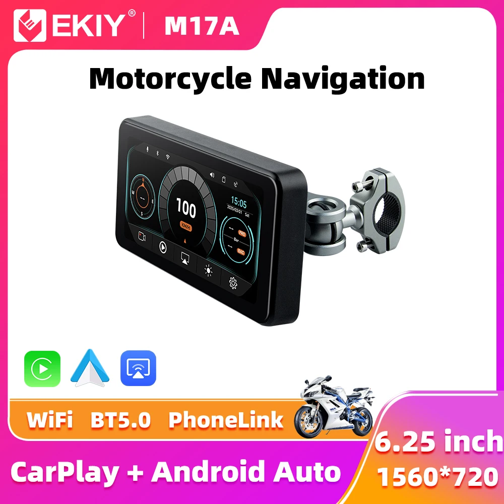 EKIY Écran de navigation GPS numérique portable pour moto avec CarPlay sans fil et Android Auto, 6,25 pouces, moniteur TPMS