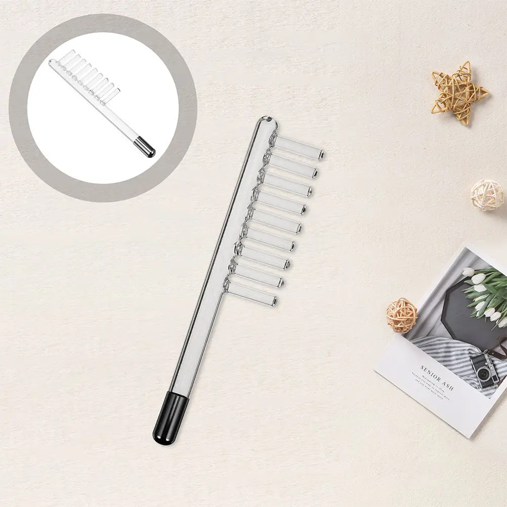 Lot de 3 accessoires pour instrument d'électrothérapie : Peigne transparent et baguette haute fréquence pour traitement du cuir chevelu, avec peigne de remplacement en verre
