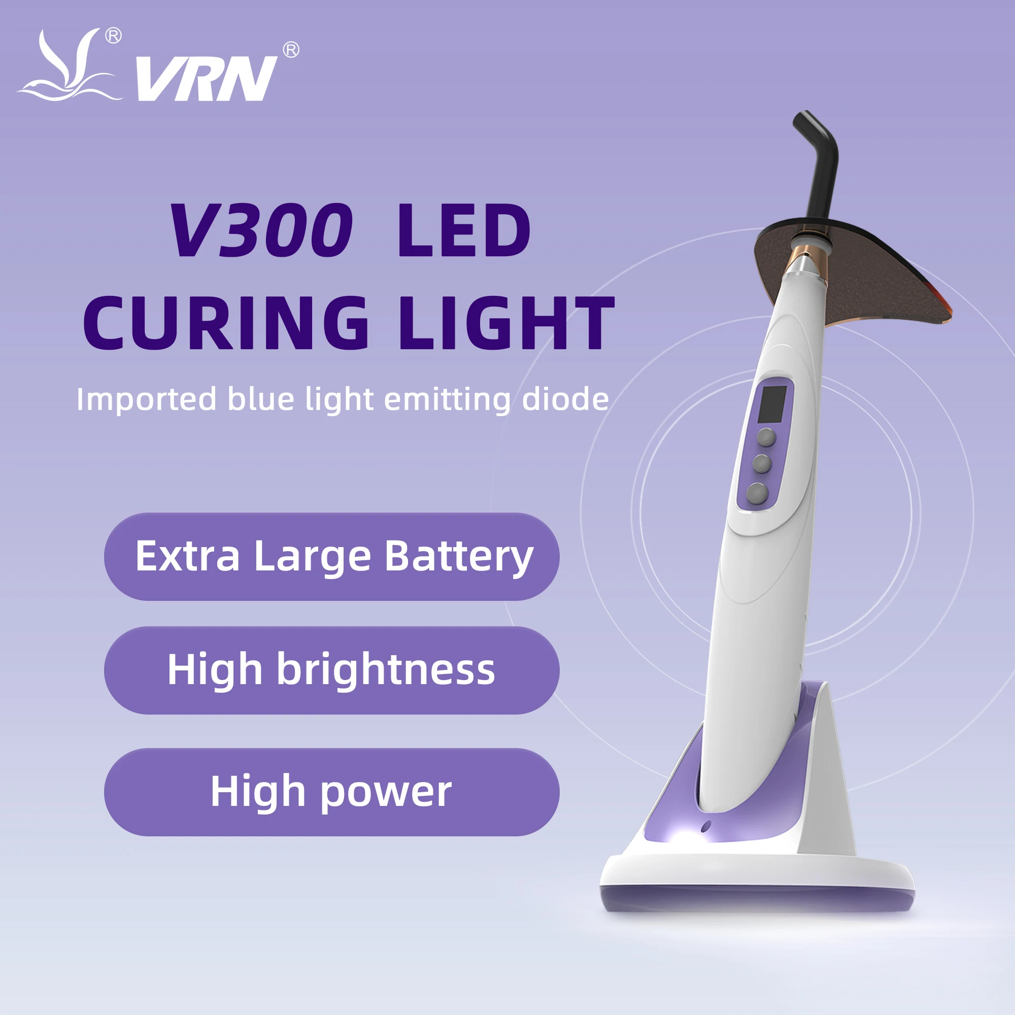 VRN V300 lampe de polymérisation dentaire LED 1s résine 5W lampe 1100mw/cm2 charge sans fil 3 modes 420-515nm résine Lampara