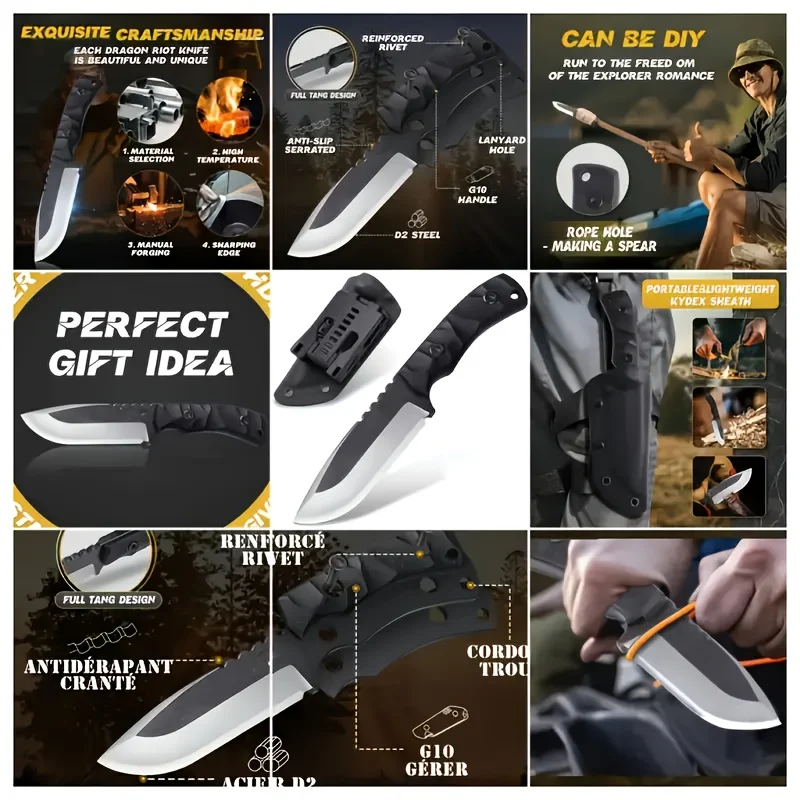 1 couteau d'extérieur de haute qualité, adapté aux activités de plein air, à la randonnée et au trekking, est un outil polyvalent pour de multiples scénarios.