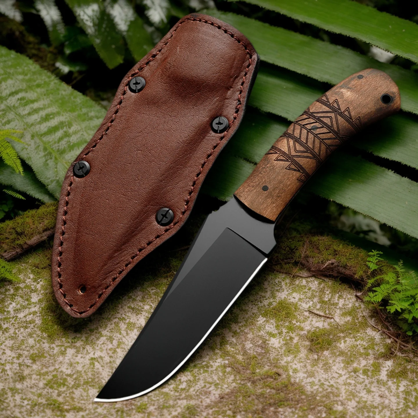 Couteau d'extérieur à lame fixe, manche G10, adapté à divers environnements, est un cadeau idéal pour les amateurs de plein air.
