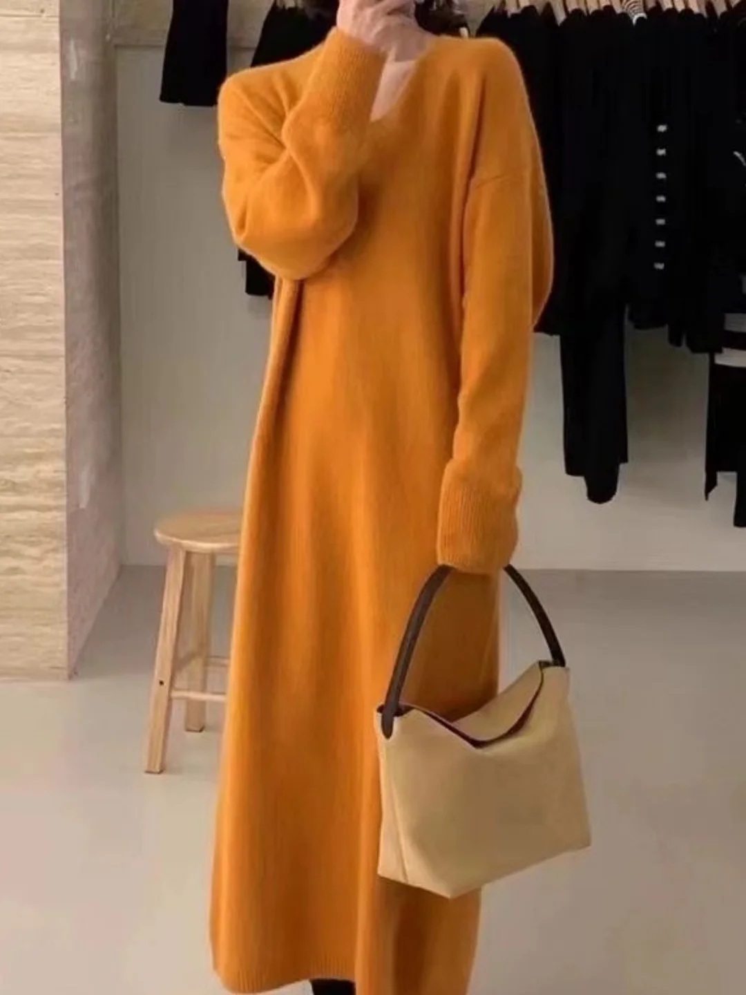 Robe midi en maille blanche à col en V pour femme, grande taille, nouvelle collection automne-hiver, avec manteau amincissant dissimulant le ventre et robe en maille assortie