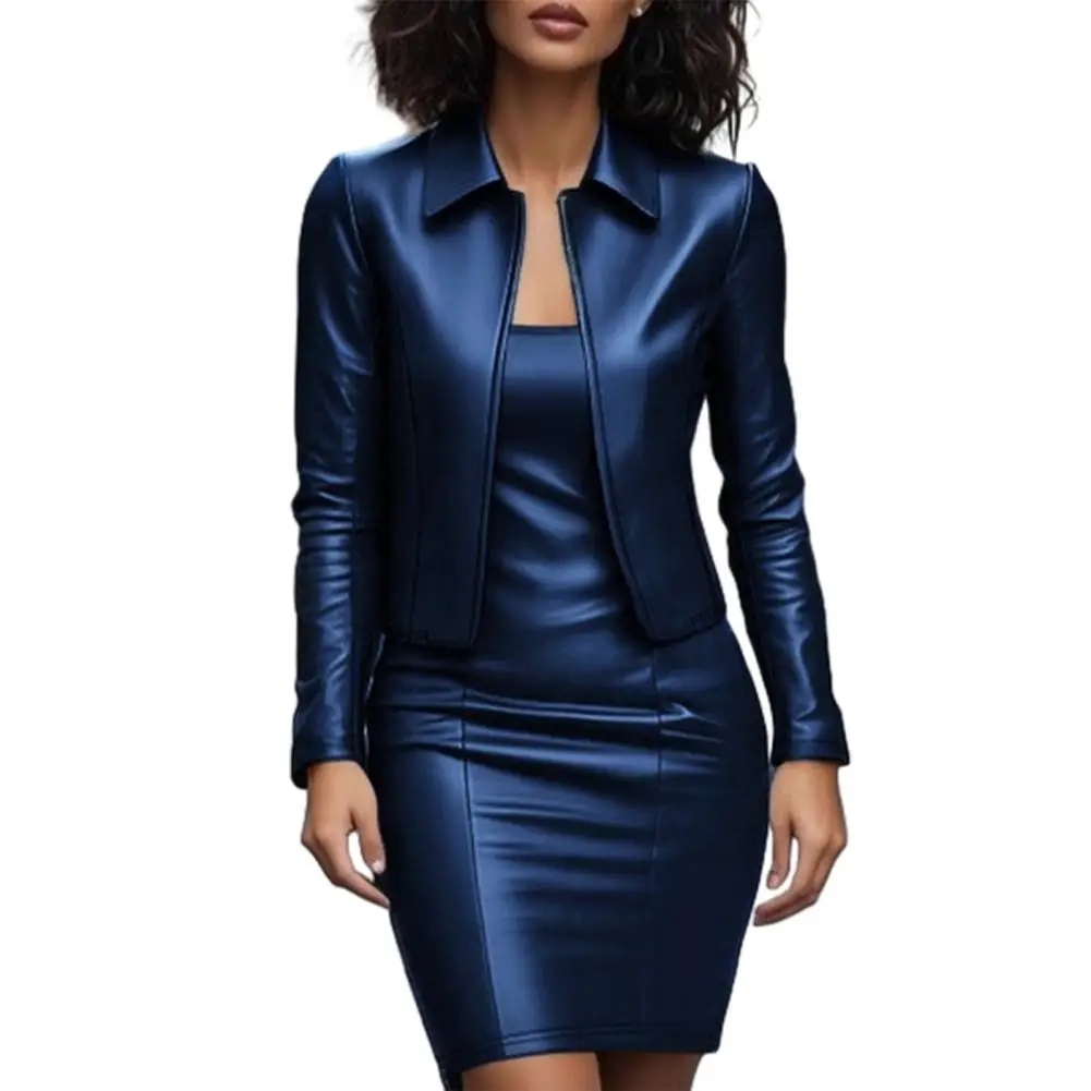 Robe Blazer en Faux cuir pour femmes, costume de travail de bureau, Mini robe avec manteau, ensemble jupe deux pièces, tenues formelles extensibles pour affaires