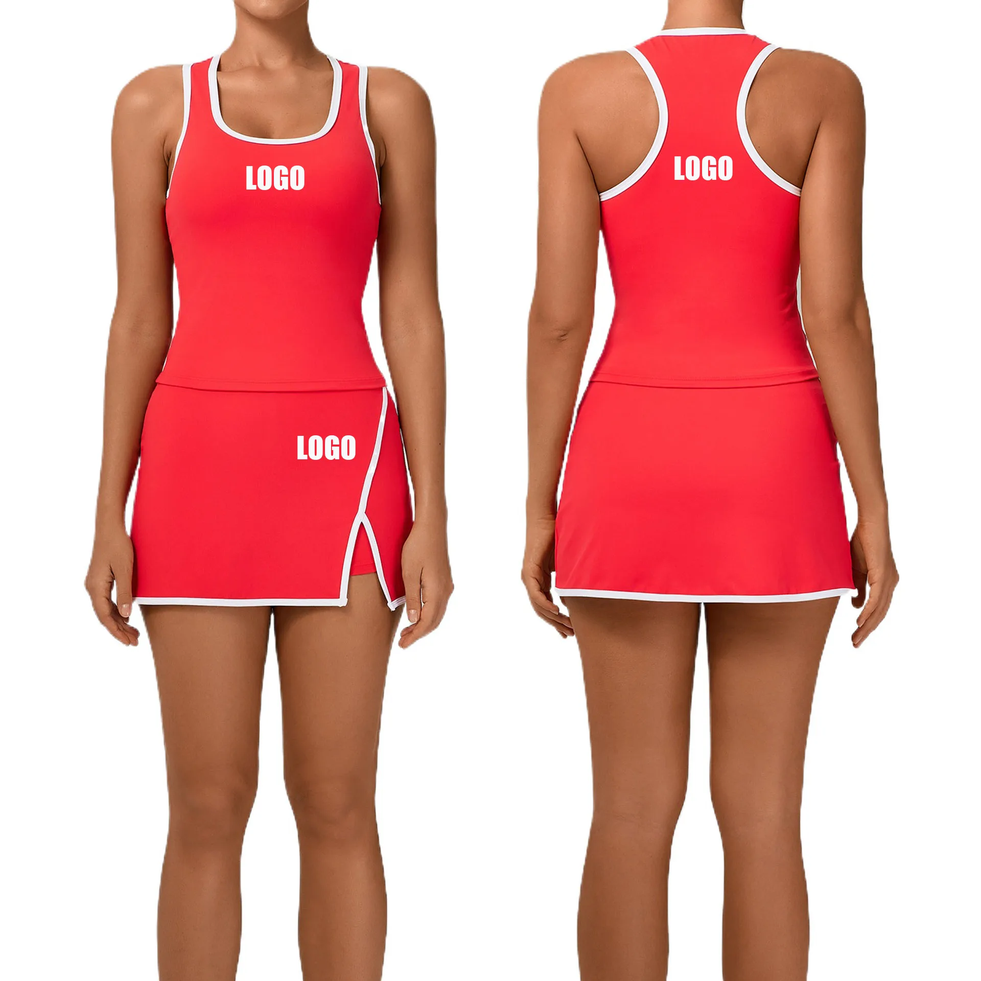 Ensemble deux pièces de sport et yoga pour femme, nouveau gilet et jupe courte, ensemble de tennis bicolore, avec LOGO personnalisé