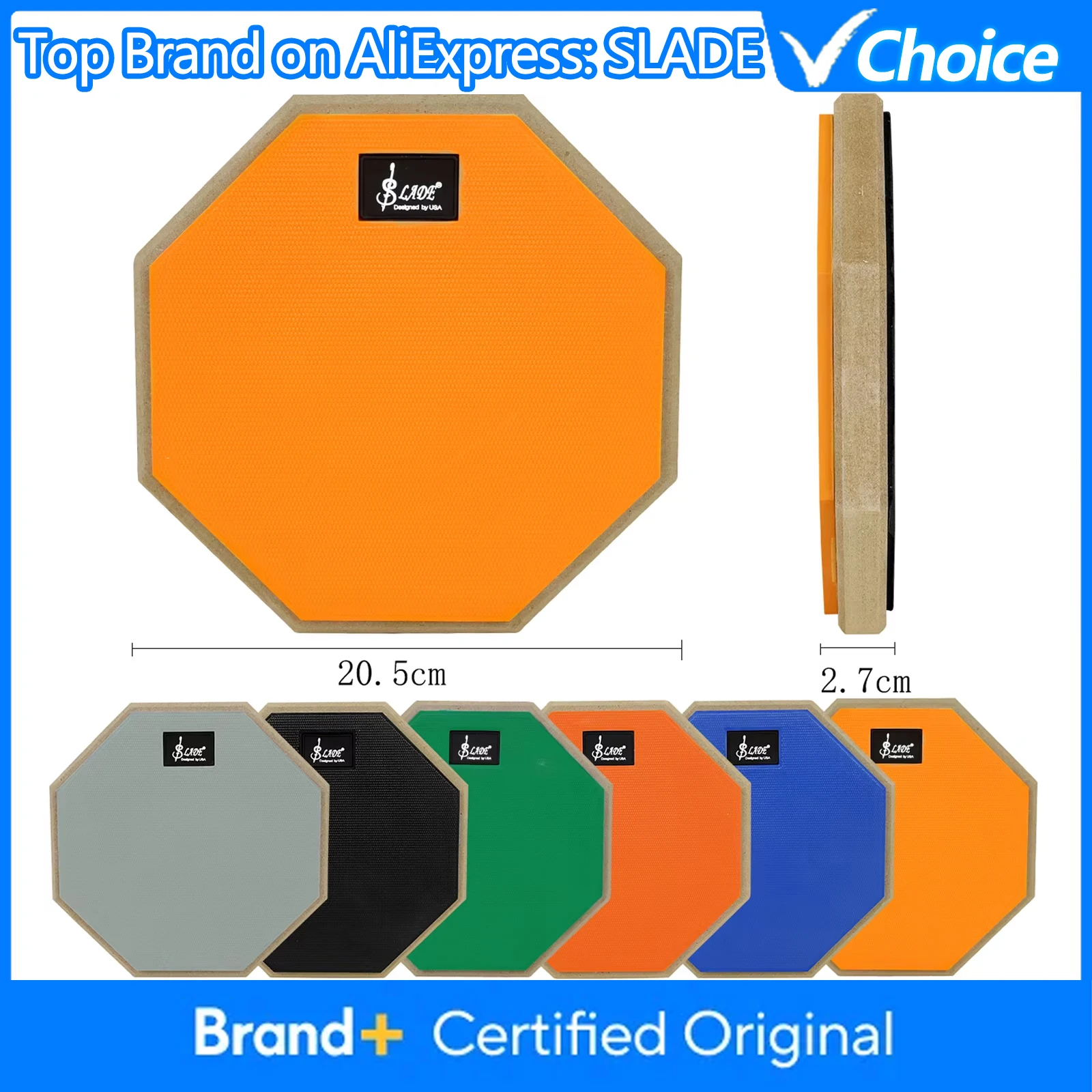 SLADE Pad de batterie silencieux de 8 pouces, pad d'entraînement en caoutchouc et bois, pad de batterie muet pour l'entraînement à la batterie de jazz, exercices pour débutants