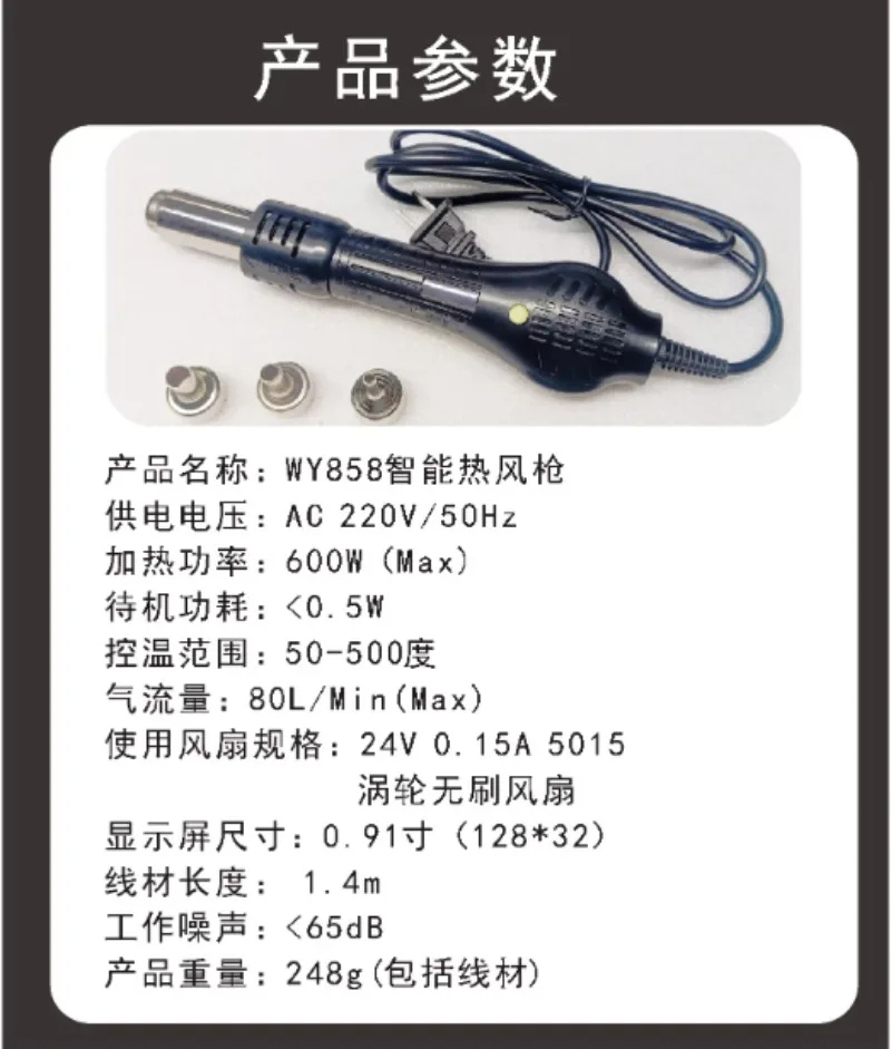 Pistolet à air thermostaté intégré portable WY858P pour dessoudage de composants SMT – Partenaire essentiel pour le soudage