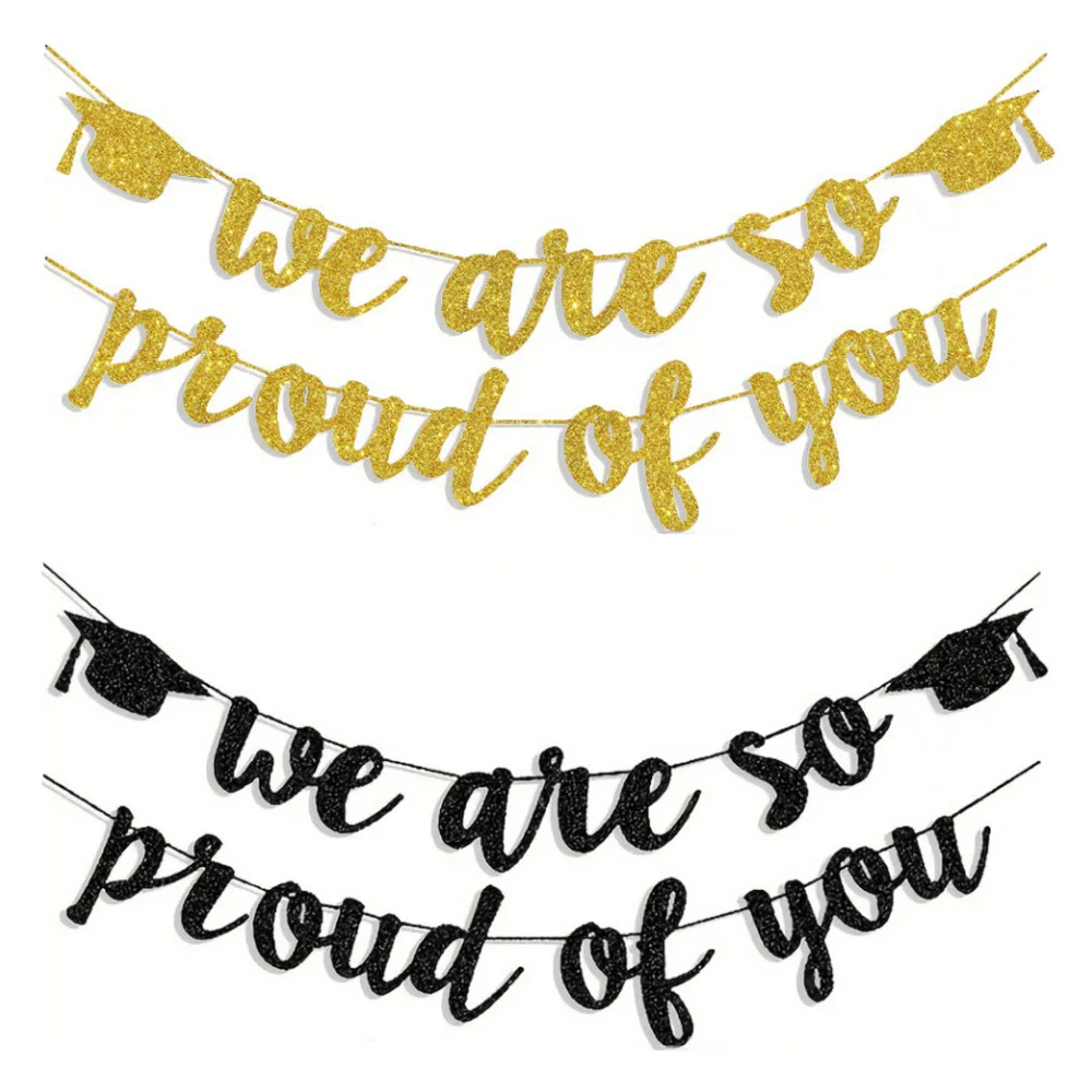 Bannières de remise de diplôme 2026 scintillantes « Nous sommes si fiers de vous » – Guirlande de bannières de remise de diplôme pour les fêtes de remise de diplôme et les félicitations