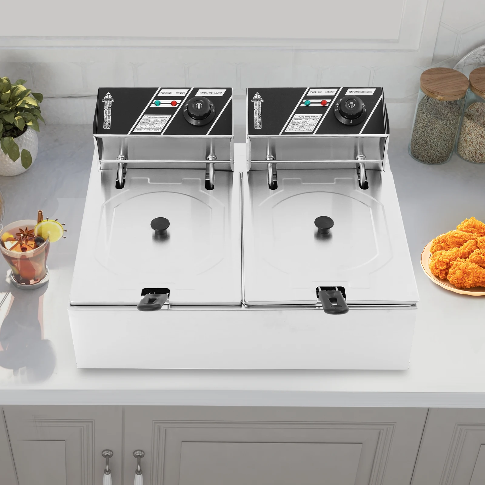Friteuse électrique 6L + 6L, Double friteuse en acier inoxydable, friteuse à Zones froides avec panier de friteuse pour restaurants rapides, barres de collation