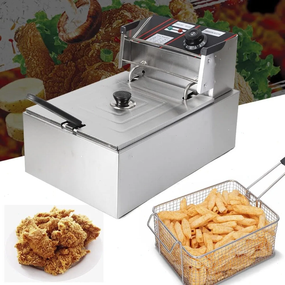 Friteuse électrique argentée, 6L, friteuse rectangulaire en acier inoxydable pour table, 220V, pour restaurants, centres commerciaux