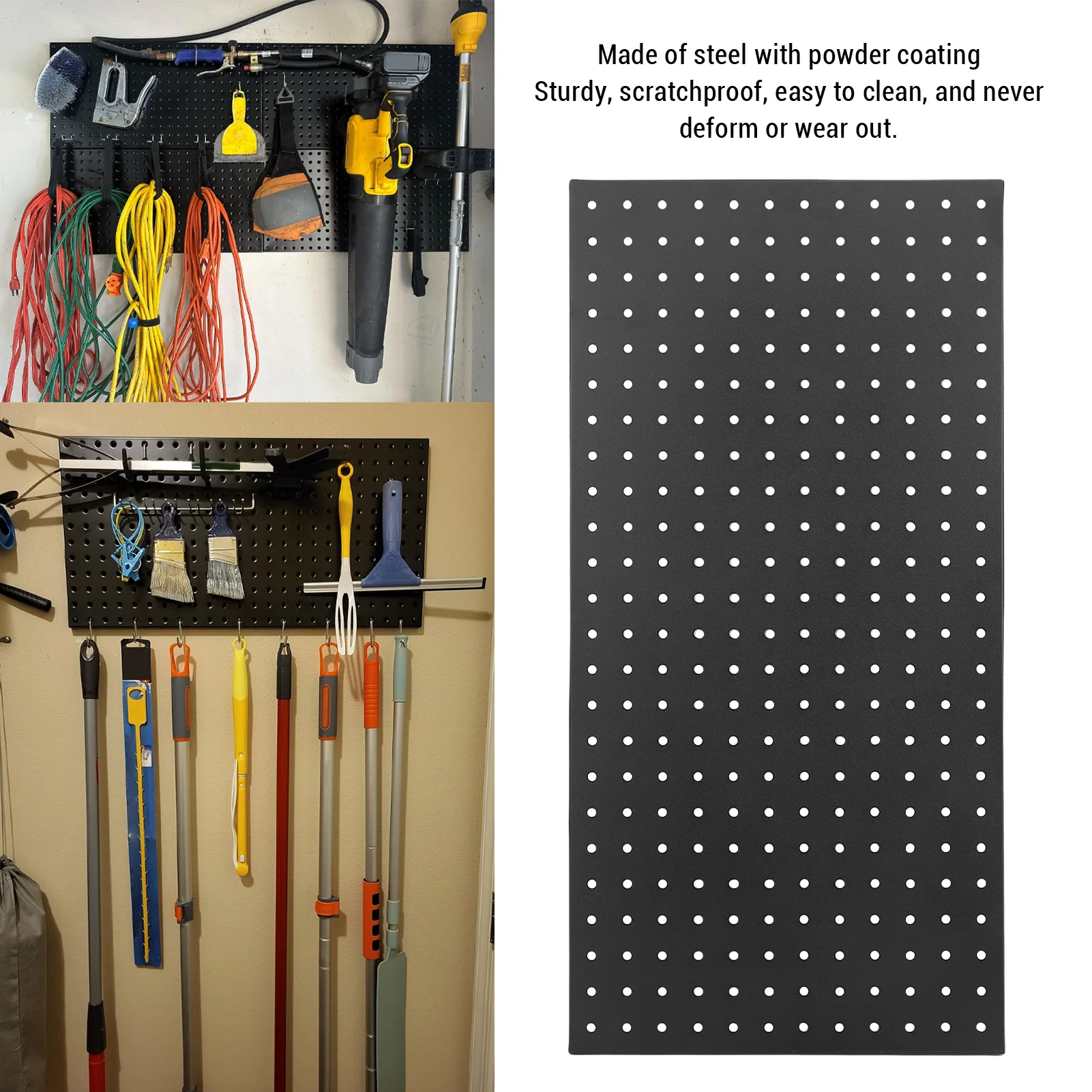 Panneaux de pegboard métalliques, panneaux de pegboard muraux en métal, 24 x 12 pouces, panneau de pegboard modulaire en acier, organisateur d'outils pour garage, établi, atelier