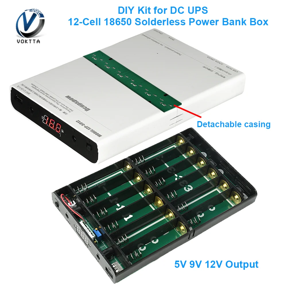 Nouveau kit DIY de boîtier d'alimentation sans soudure pour UPS DC 12 cellules 18650, tension réglable, pour modem optique, routeur, alimentation ininterrompue 5V 9V 12V